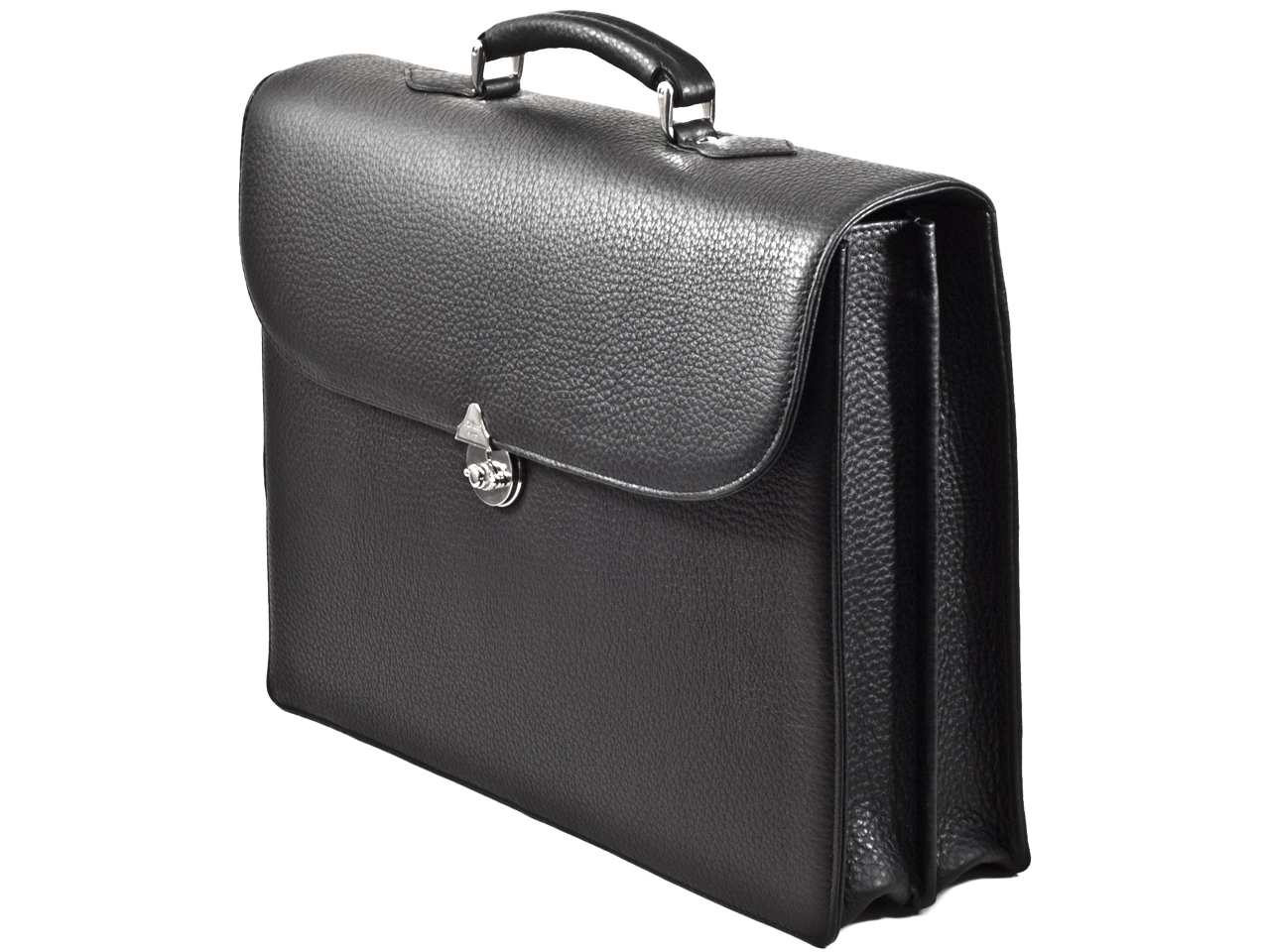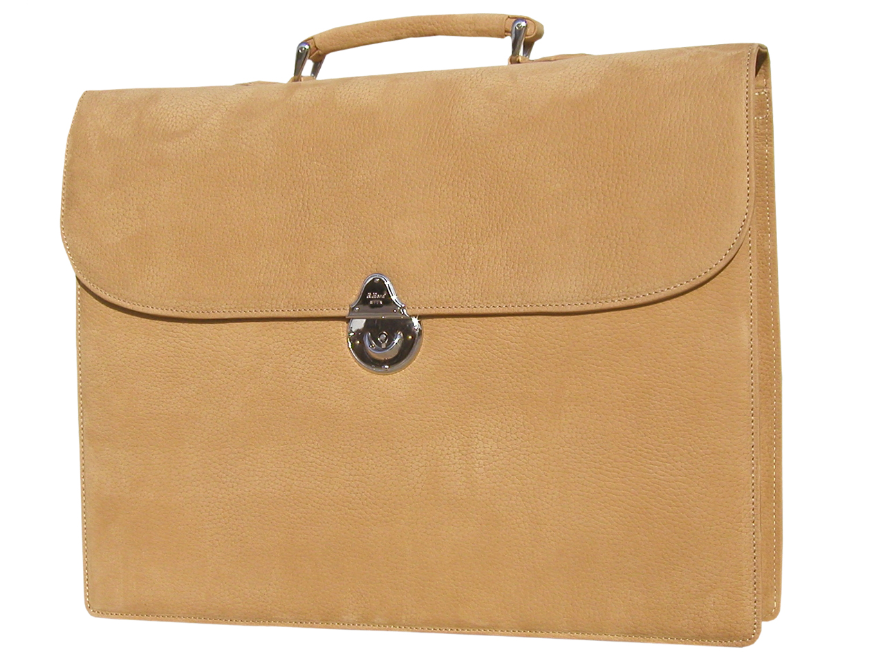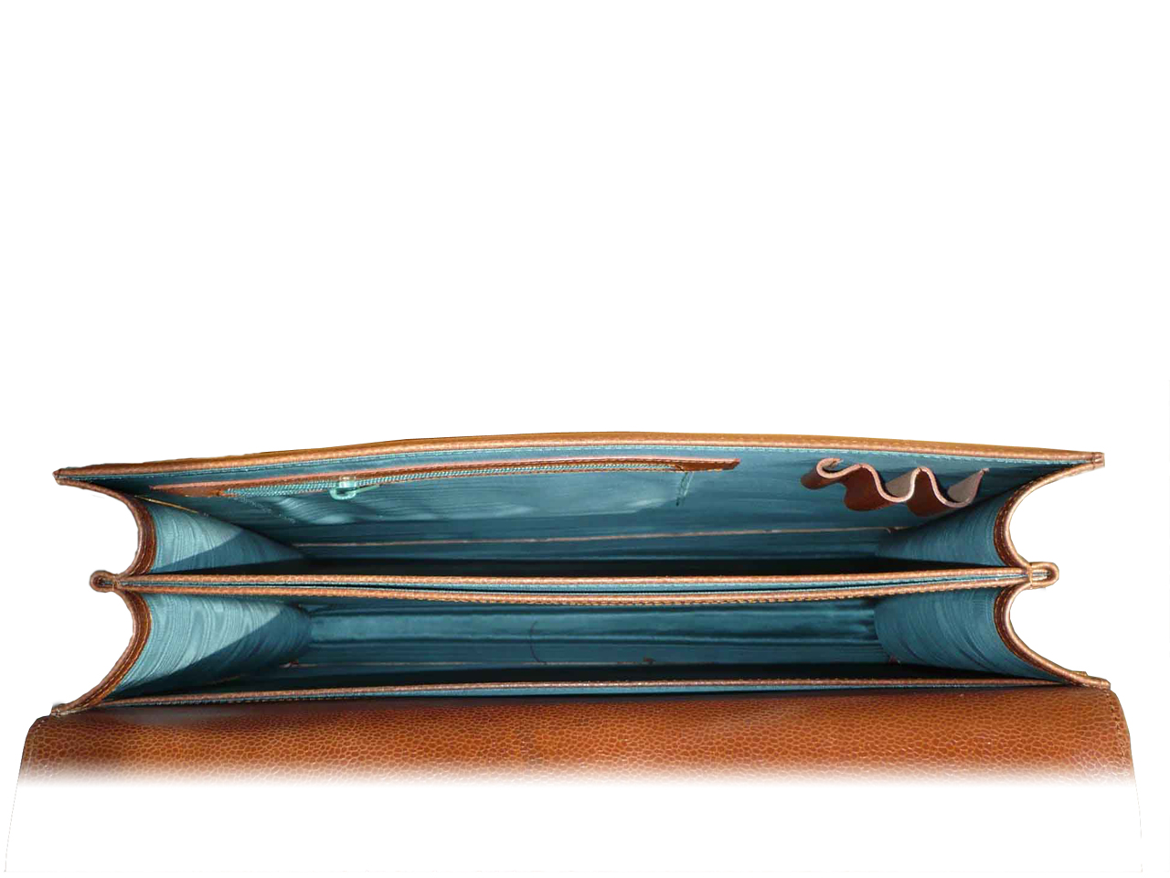 Klassische 2-faltige Herrenaktentasche mit Mittelklemmfach und aufwendiger Inneneinrichtung (Kleine Zipptasche, Stiftschlaufen, etc.)