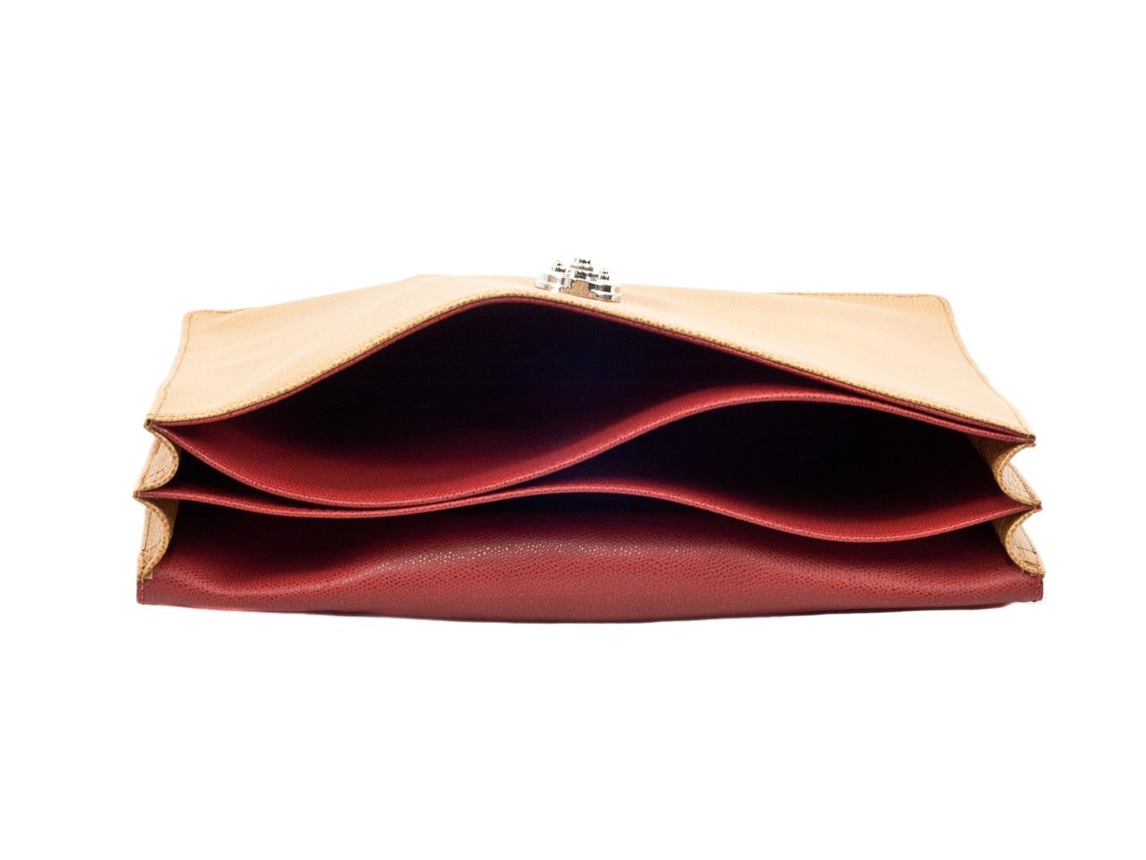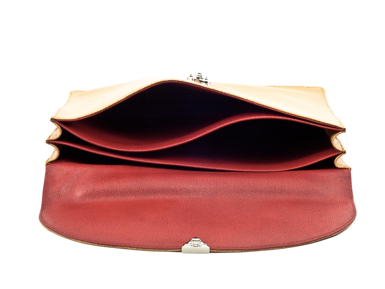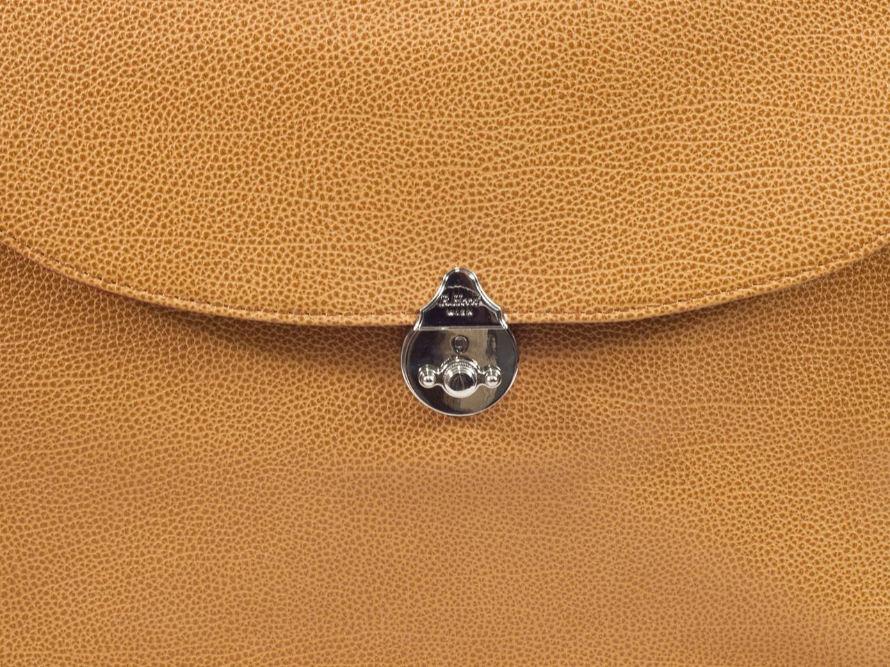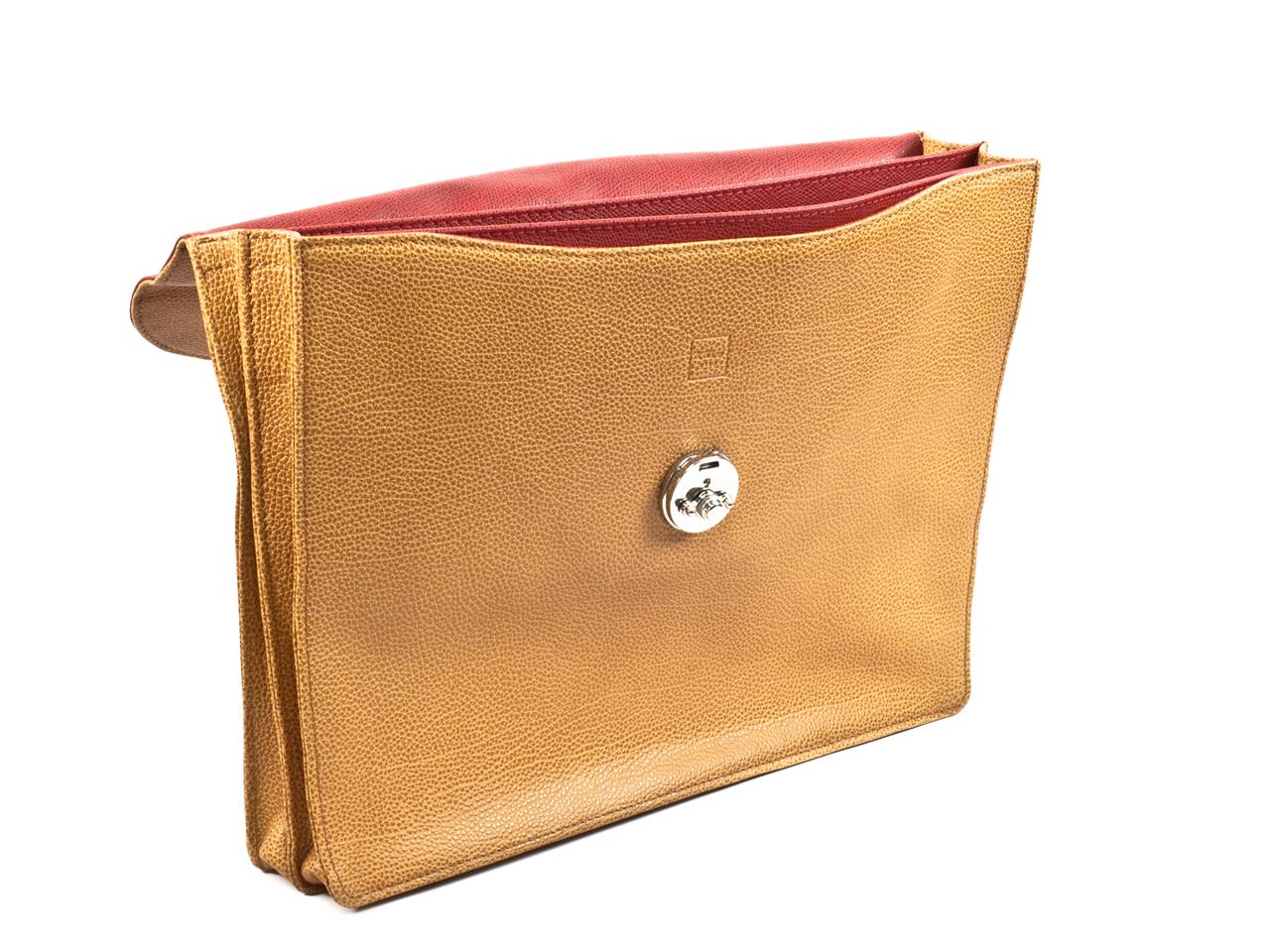 Eine elegante, schmale, weich gearbeitete zweifaltige Aktentasche. Der zweiteilige Innenraum ist komplett mit Leder gefüttert; zusätzlich befindet sich auf der Vorderseite ein flaches Einschubfach.