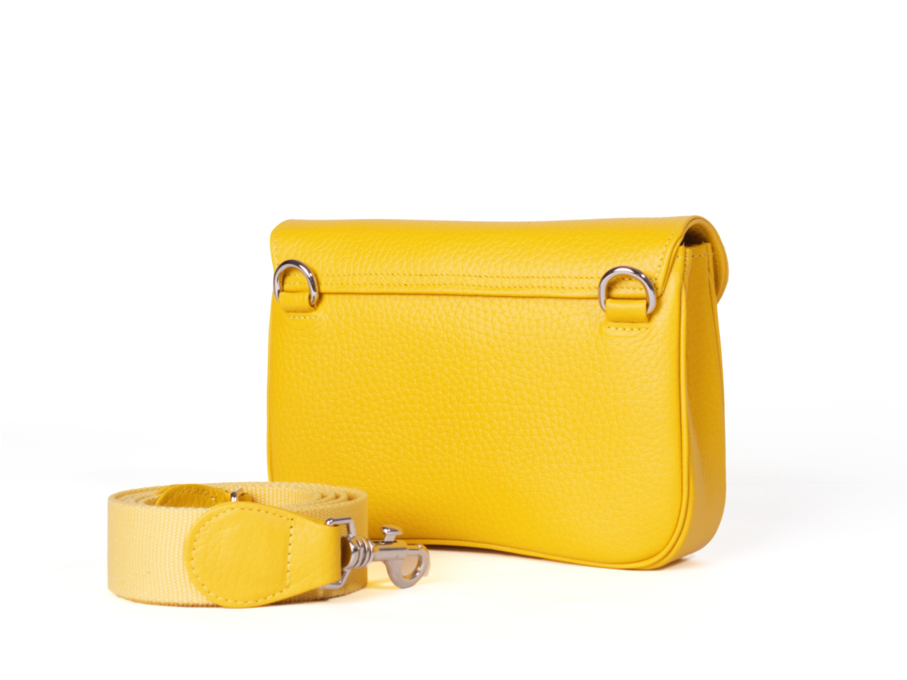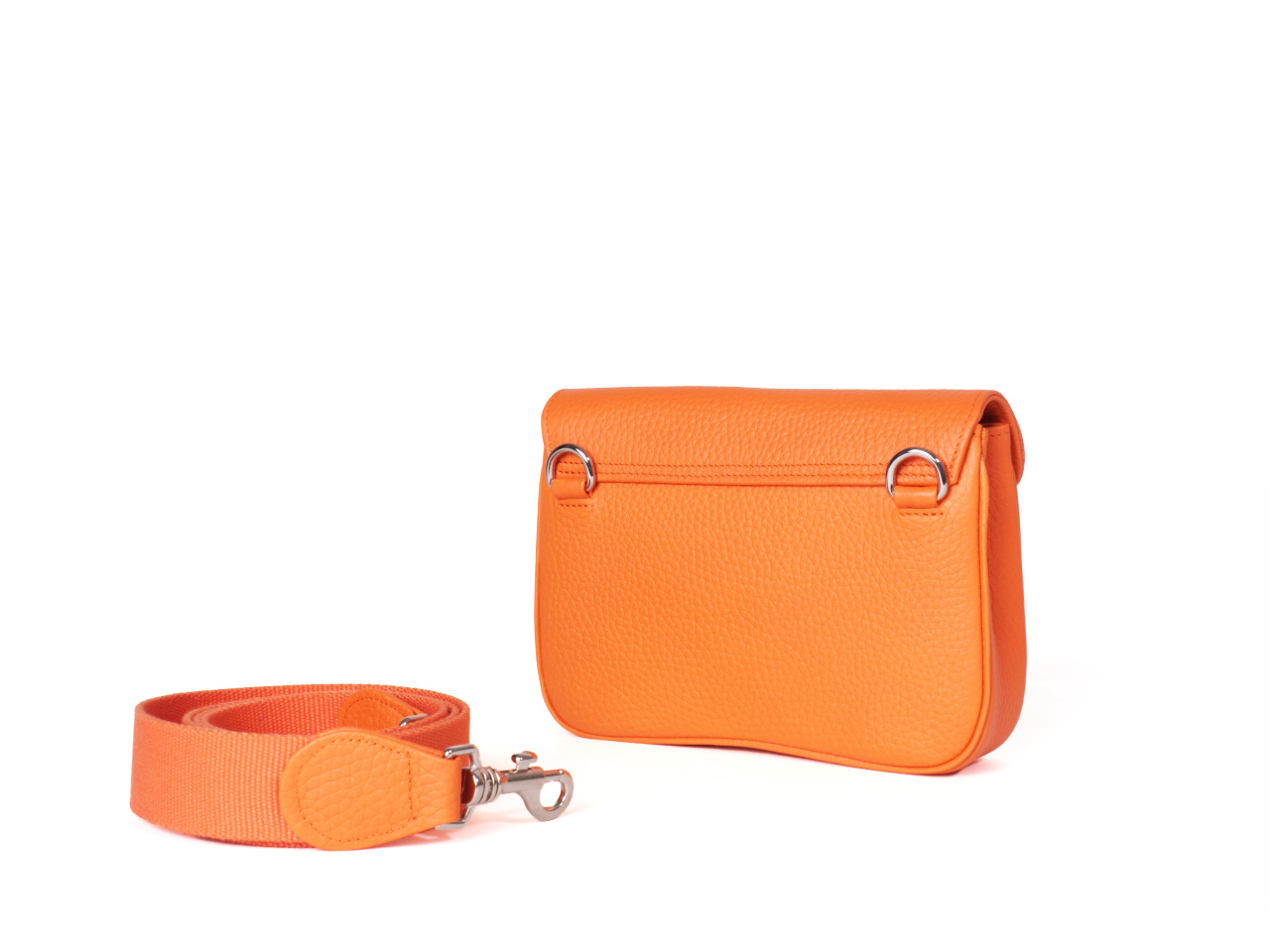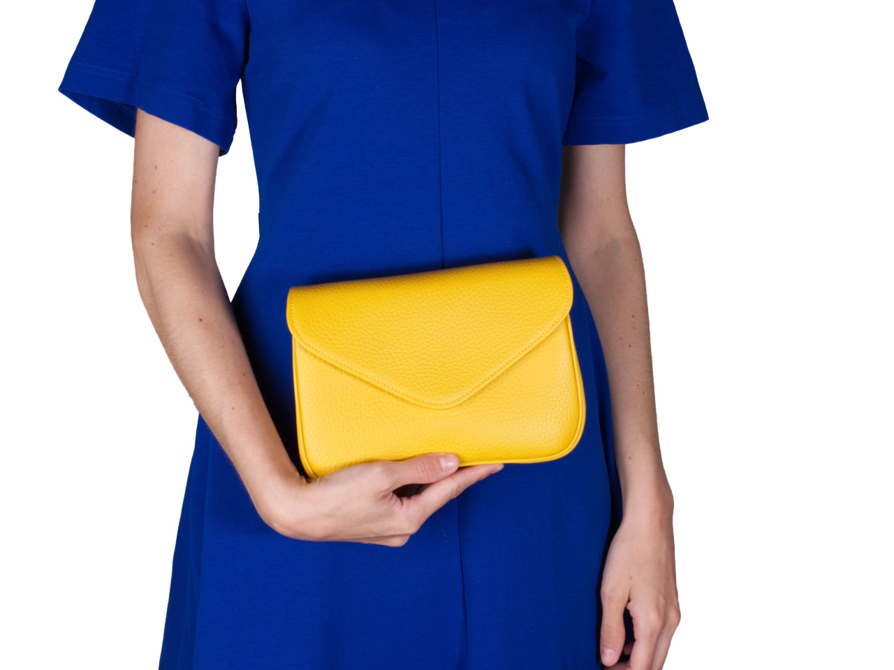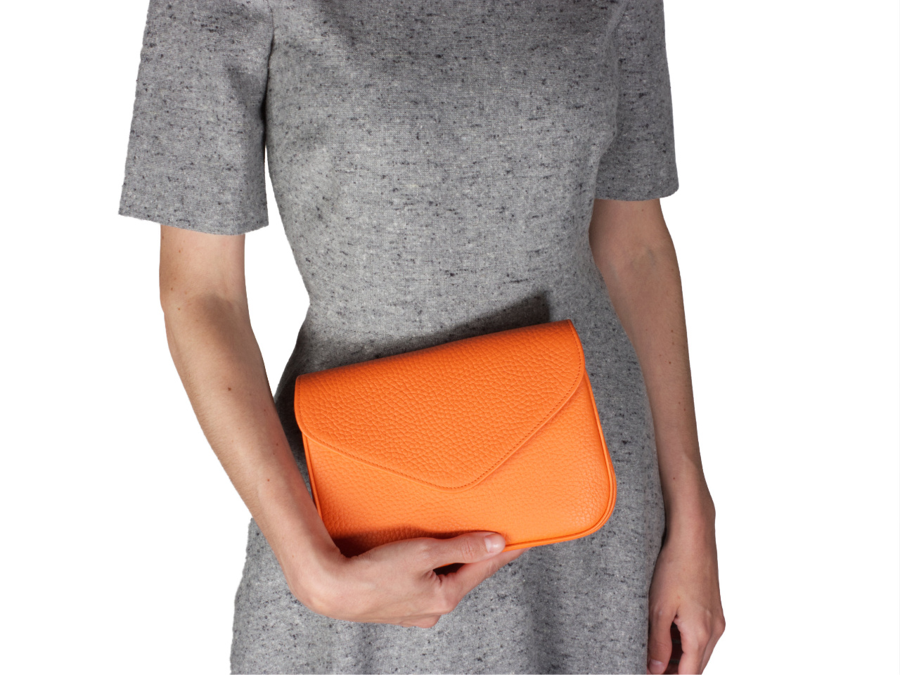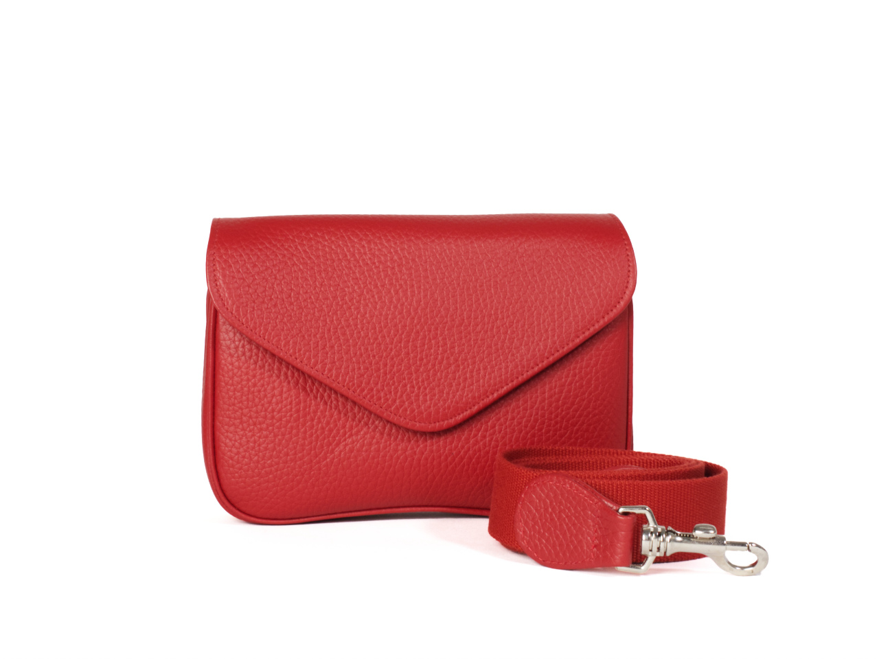Eine kleine Handtasche mit eleganter Kuvertklappe und Magnetverschluss. Im Inneren verfügt die Tasche über ein Hauptfach, sowie ein weiteres Steckfach. Sie können die Tasche als Clutch in der Hand, oder um die Schulter tragen.