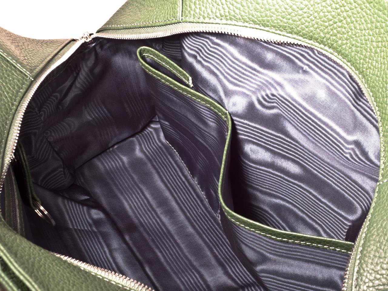 Die Damentasche „Triple“ besteht aus drei eigenen Abteilungen; fast so, als ob drei Taschen miteinander vernäht worden wären. Außen befinden sich 2 großzügige Steckfächer, dazwischen das „Hauptteil“, mit Zipp zu verschließen.
